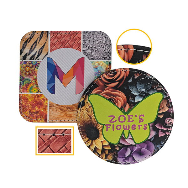 N-Eco recycled leather coaster Round or square Cork backing with stitching